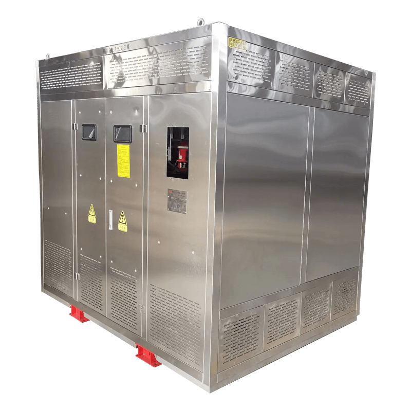 干式變壓器保護外殼溫控、溫顯溫控系統(tǒng)由溫度控制器和安裝在產(chǎn)品最熱點即低壓繞組上端部的PTC測溫元件構(gòu)成,實現(xiàn)對變壓器的溫度測量與控制,若由于進載運行或故障引起變壓器繞組溫度過高,溫度控制器發(fā)出報警信號,溫度超過安全值時會自行跳閘,采用強迫風(fēng)冷時則由溫度控制器根據(jù)繞組溫度高低決定冷卻風(fēng)機的投入或切換。溫顯系統(tǒng)直接顯示變壓器運行過程中繞組的熱點溫度,可和溫控系統(tǒng)配合使用。特殊設(shè)計我公司除了生產(chǎn)常規(guī)的樹脂絕緣干式電力變壓器以外,還生產(chǎn)隔離、整流、接地等其它特殊要求的變壓器,以滿足不同用戶的需求。